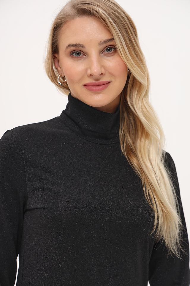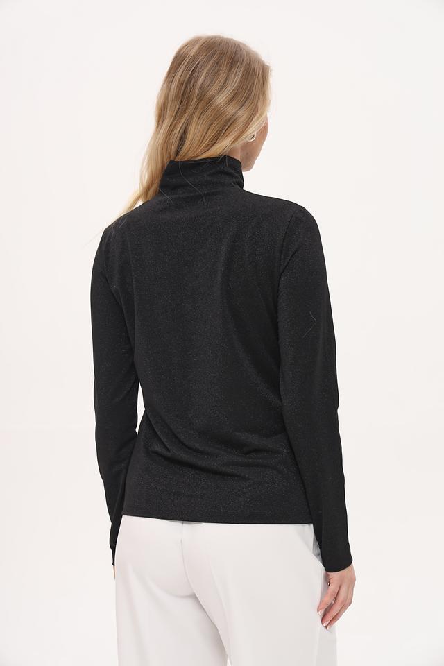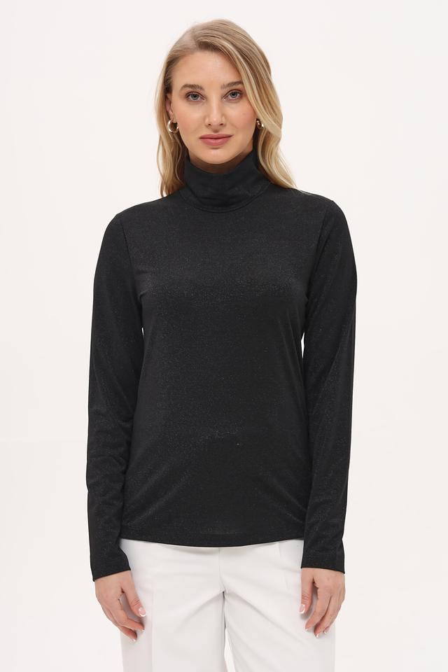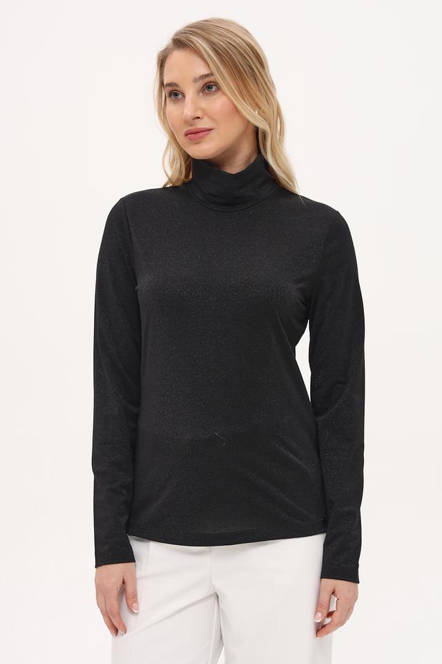 Чёрная футболка Marc Cain с добавлением мерцающих пайеток станет стильным дополнением к вашему гардеробу. Модель с высоким воротом и длинными рукавами выполнена из эластичного материала, обеспечивающего комфортную посадку. Состав: полиэстер 62%, метализ.нить 17%, полиамид 14%, эластан 7%