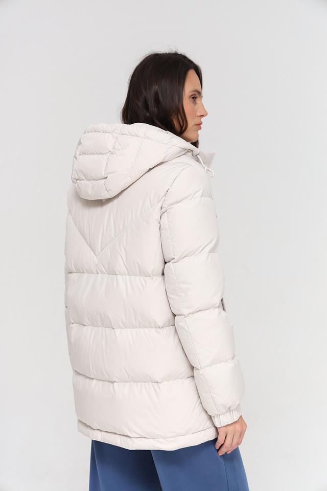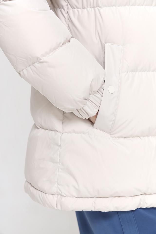 Куртка имеет прямой, слегка удлиненный крой, который обеспечивает комфорт и свободу движений. Стеганая текстура не только добавляет визуальный интерес, но и помогает удерживать тепло. Капюшон защитит от ветра и непогоды.