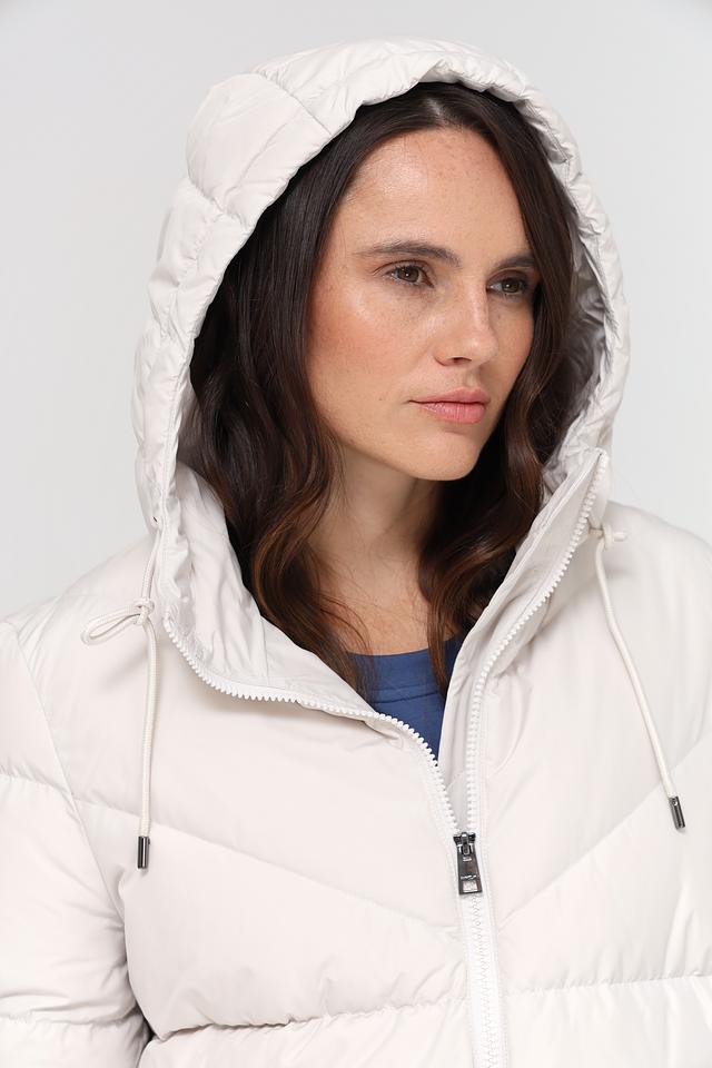 Бежевая куртка Marc Cain – это стильная и теплая модель с капюшоном. Удлиненный силуэт и стеганая текстура придают куртке современный вид. Идеальный выбор для прохладной погоды. Состав: полиэстер 100%