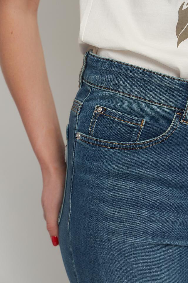 Состав ткани: 92% хлопок, 6% эластомультиэстер, 2% эластан. Хлопок обеспечивает мягкость и воздухопроницаемость, а добавление эластана придает джинсам эластичность и хорошую посадку по фигуре. Эти джинсы идеально подойдут для создания различных образов – от повседневных до более нарядных.
