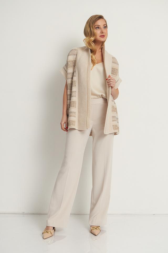 Представляем элегантные брюки классического кроя от бренда Marc Cain. Эта модель выполнена в нежном бежевом цвете, который легко сочетается с различными элементами гардероба.