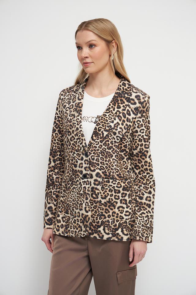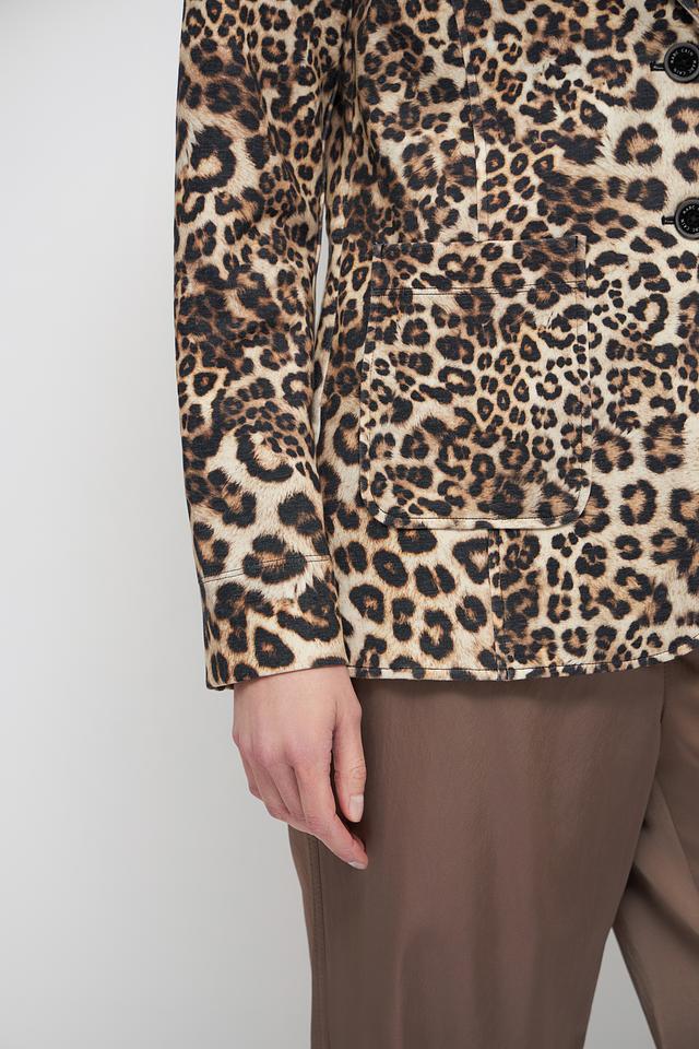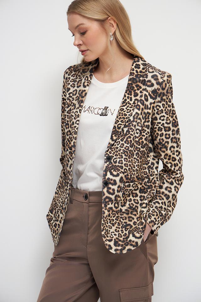 Этот жакет от Marc Cain станет ярким акцентом вашего образа. Модель выполнена в эффектном леопардовом принте, который добавляет динамики и индивидуальности.