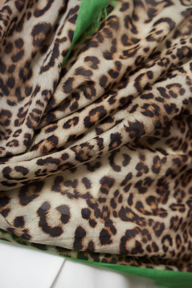 Платок Marc Cain в леопардовый принт с яркой зелёной отделкой станет стильным дополнением к вашему образу. Изготовлен из высококачественного хлопка и шёлка, обеспечивая мягкость и комфорт. Состав: хлопок 72%, шелк 28%
