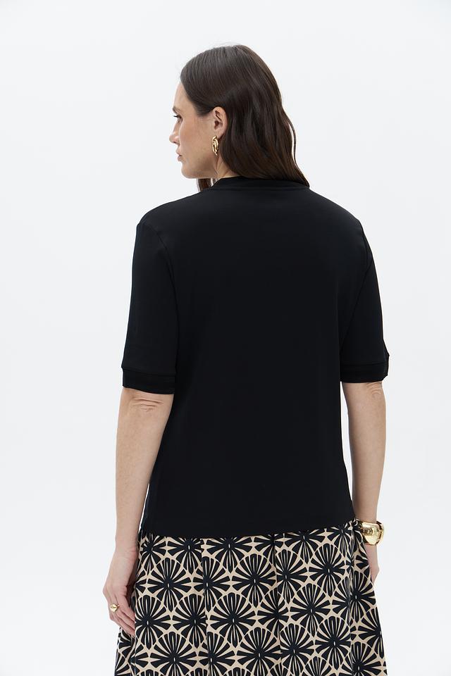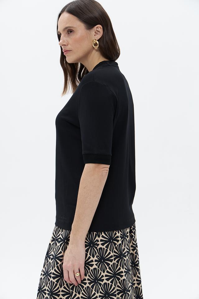 Эта чёрная футболка от Marc Cain станет незаменимой частью вашего гардероба. Изготовленная из высококачественного хлопка с добавлением эластана, она обеспечивает комфорт и приятные ощущения на коже.