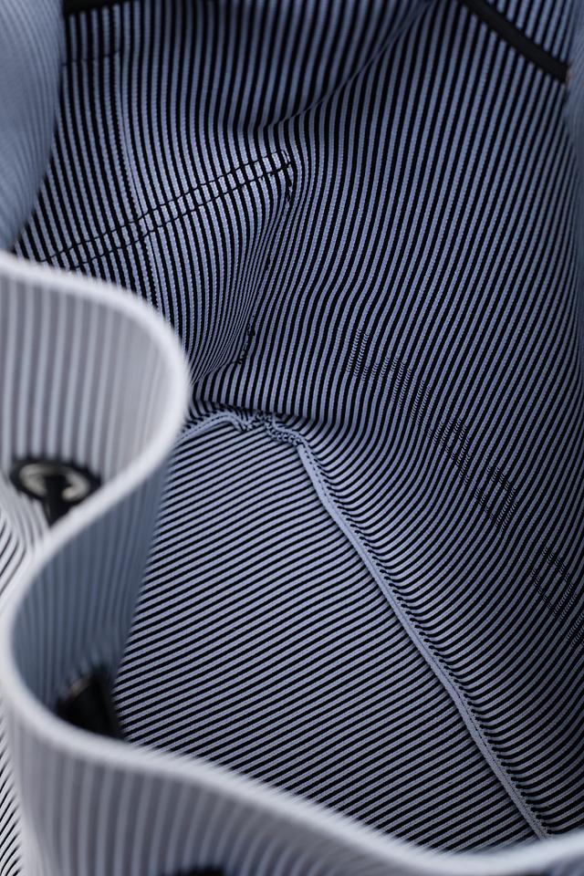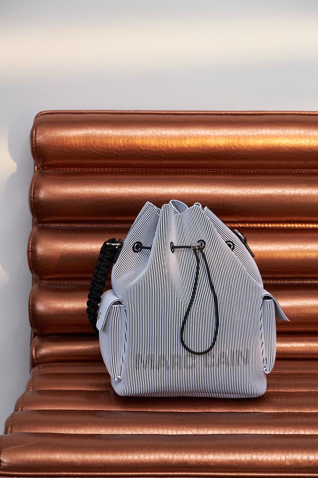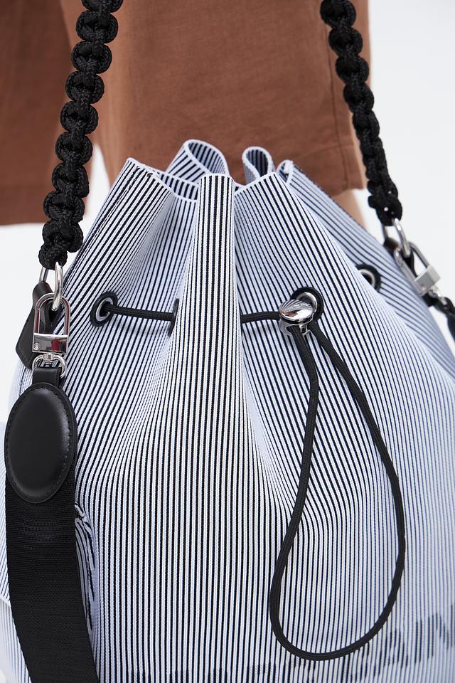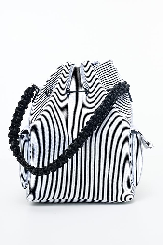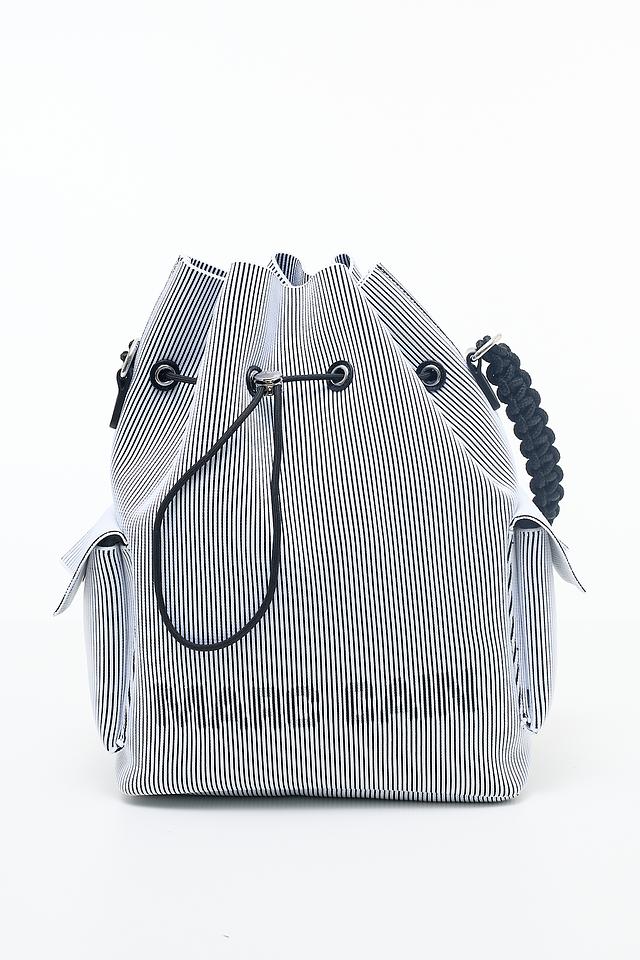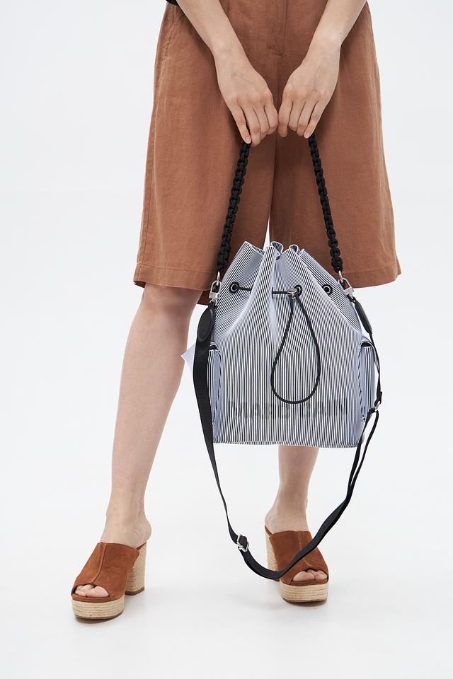 Стильная сумка Marc Cain в сине-белую полоску. Модель выполнена из полиэстера и полиамида, оснащена плечевым ремнем и затягивается на шнурок. Состав: полиэстер 70%, полиамид 30%