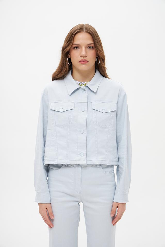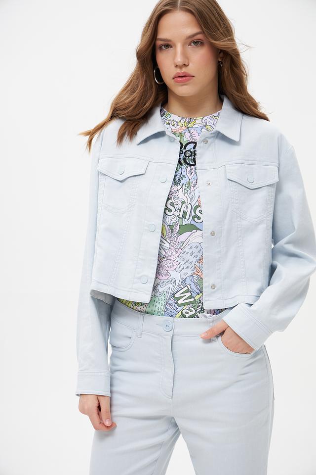 Светло-голубой жакет Marc Cain из денима — стильное и комфортное решение для создания повседневных образов. Укороченный крой и классический дизайн делают эту модель универсальной и подходящей для различных стилей. Состав: хлопок 67%, лен 30%, эластан 3%