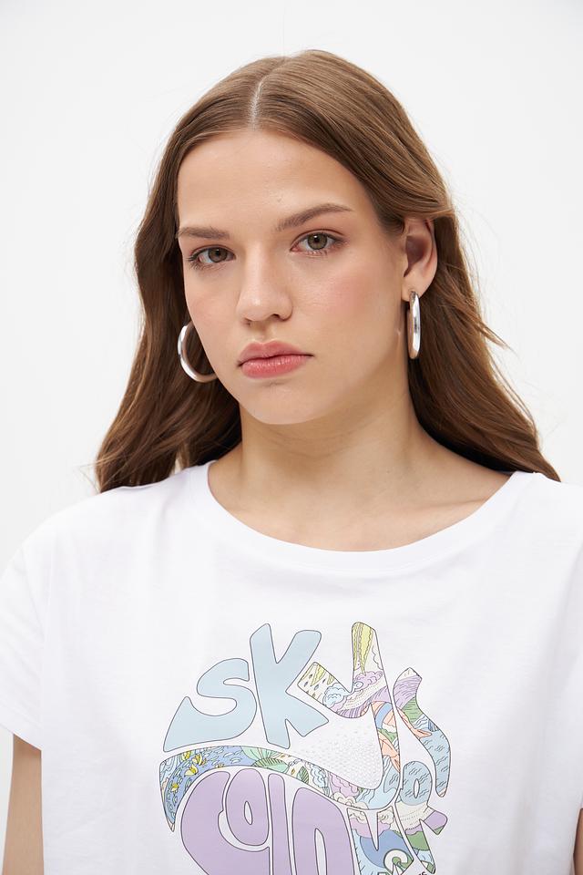 Футболка имеет свободный крой, обеспечивающий свободу движений. Декорирована ярким графическим принтом, который придаёт образу индивидуальность. Круглый вырез горловины и короткие рукава делают эту футболку идеальным выбором для теплой погоды.