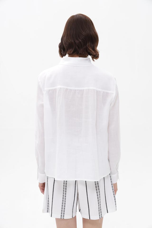 Белая блузка Marc Cain из 100% рами. Легкая, воздушная модель с завязками на горловине и длинными рукавами. Идеальный выбор для создания элегантного образа. Состав: рами 100%