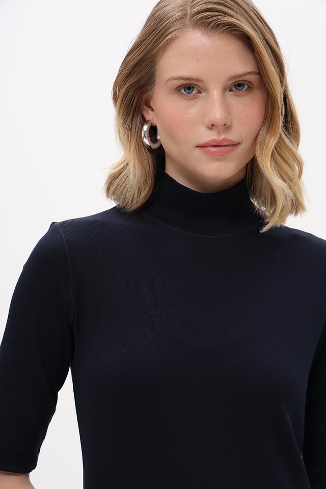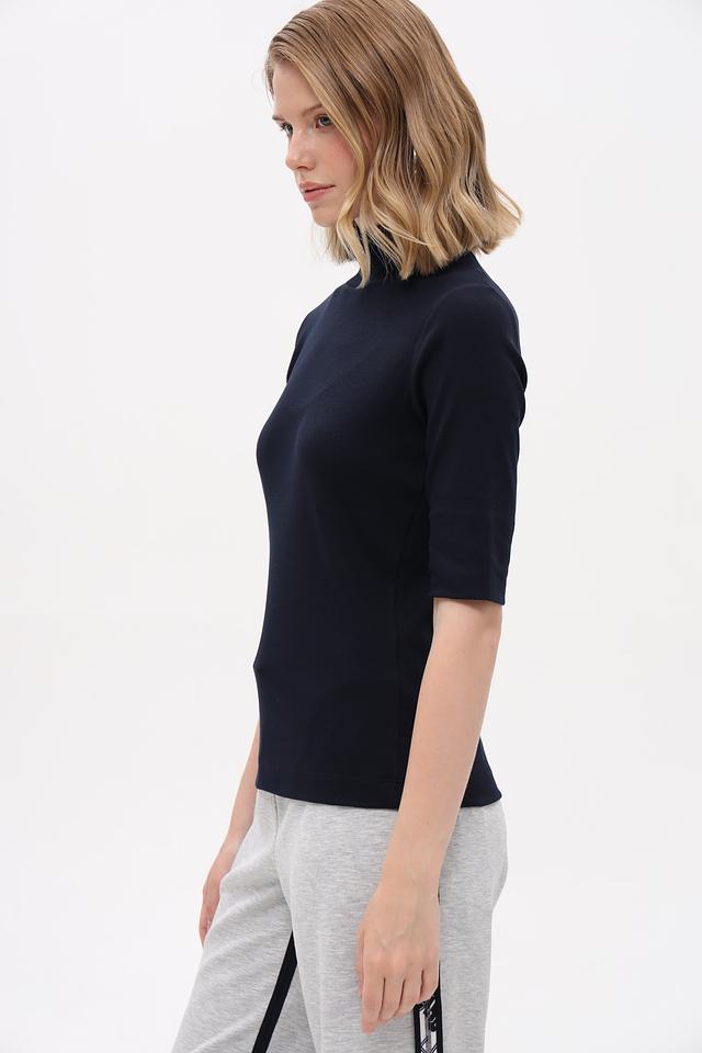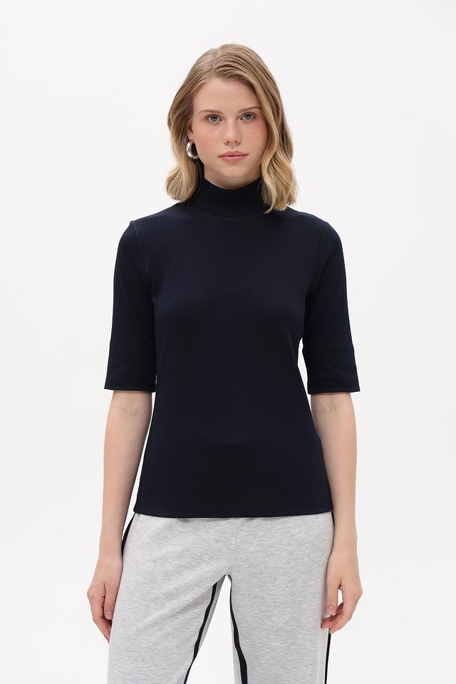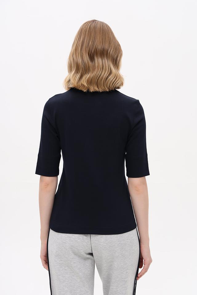 Эта футболка идеально подойдет для повседневной носки, а также для создания более элегантных образов в сочетании с юбками или брюками. Тёмно-синий цвет легко сочетается с другими цветами в вашем гардеробе.