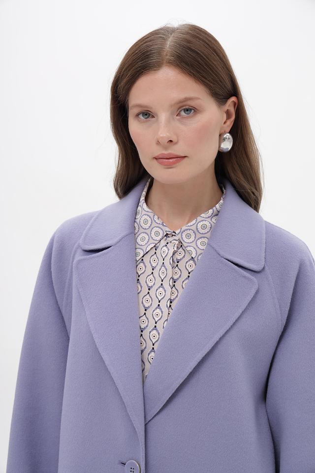 Стильное пальто Marc Cain лавандового цвета выполнено из 100% шерсти. Классический крой и лаконичный дизайн делают его универсальным элементом гардероба. Состав: шерсть 100%