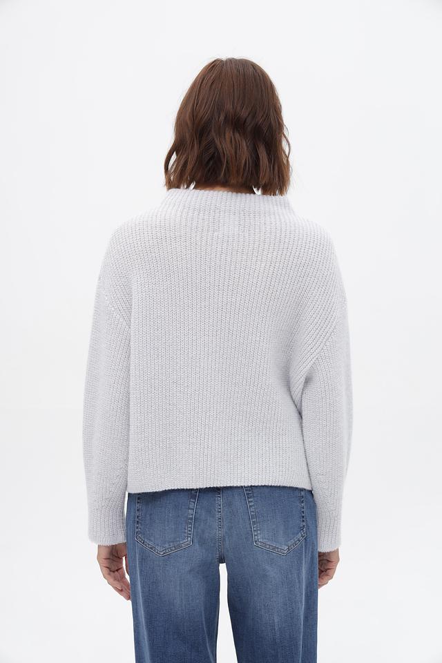 Пуловер изготовлен из высококачественной смеси альпаки (44%), полиамида (27%), полиэстера (21%) и шерсти (8%). Благодаря такому составу изделие отличается мягкостью, легкостью и приятными тактильными ощущениями. Текстура вязки создает дополнительный объем и уют.