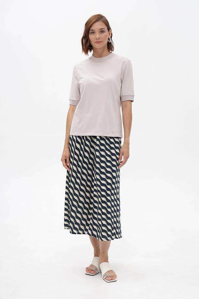 Эта футболка станет отличной базовой вещью в вашем гардеробе и прекрасно сочетается с юбками, брюками или джинсами.
