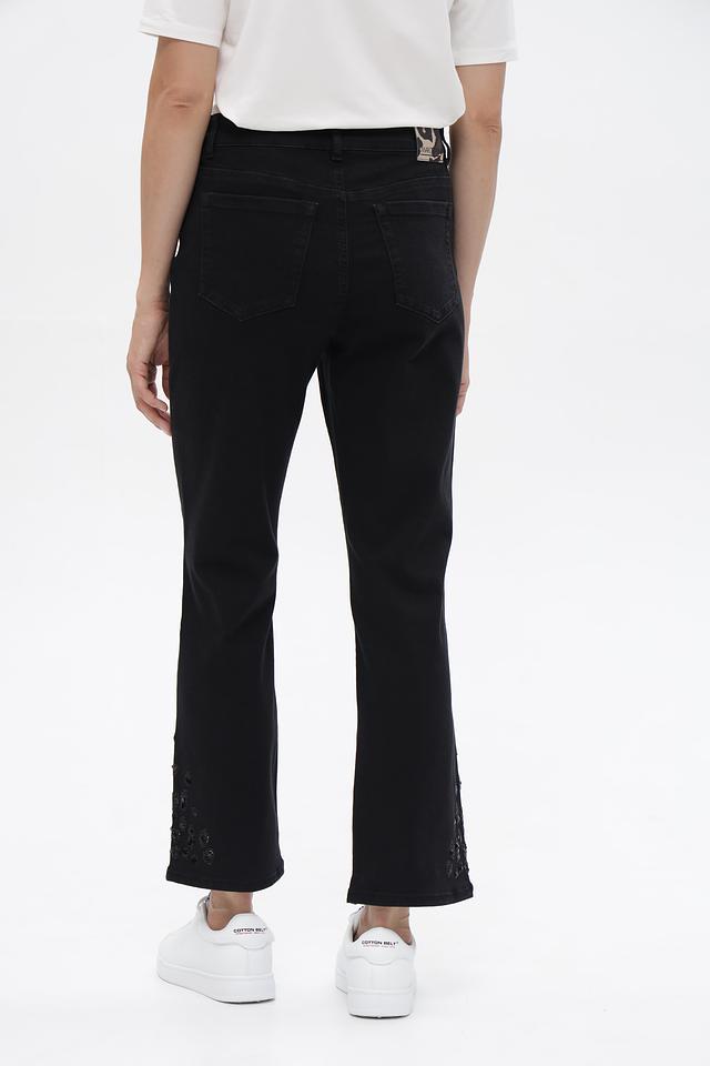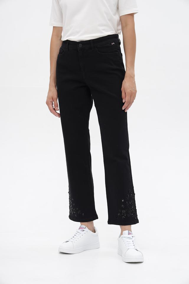 Чёрные джинсы Marc Cain с оригинальным декором из пайеток. Модель выполнена из высококачественного хлопка с добавлением эластана для комфортной посадки. Идеальный выбор для создания стильного и эффектного образа. Состав: хлопок 91%, эластомультиэстер 7%, эластан 2%