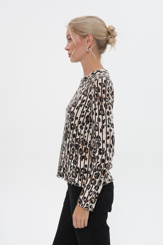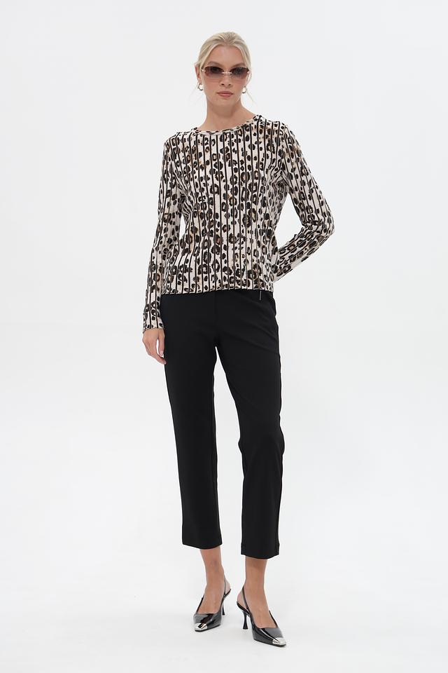 Этот стильный пуловер от Marc Cain станет прекрасным дополнением к вашему гардеробу. Пуловер выполнен в бежевых тонах и украшен эффектным леопардовым принтом, который придает ему особую изысканность.