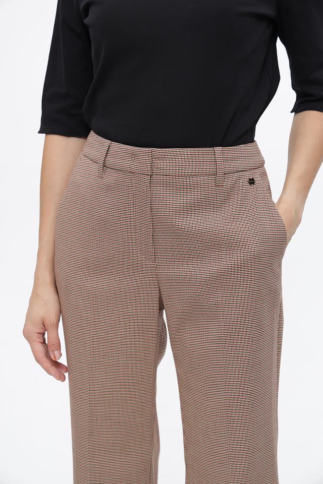 Брюки клёш от Marc Cain выполнены в классическую клетку. Модель пошита из смесовой ткани с добавлением вискозы и эластана, обеспечивающих комфорт и хорошую посадку. Состав: полиэстер 64%, вискоза 34%, эластан 2%