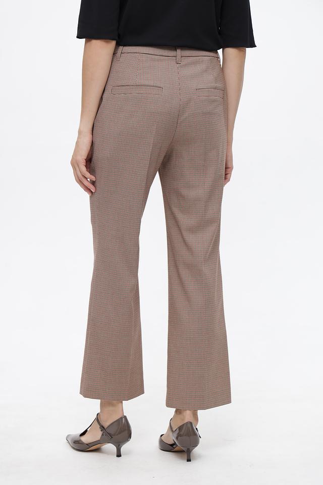 Классические брюки клёш от бренда Marc Cain станут отличным дополнением к вашему гардеробу. Модель выполнена в актуальную клетку, сочетающую коричневые, бежевые, чёрные и белые оттенки.