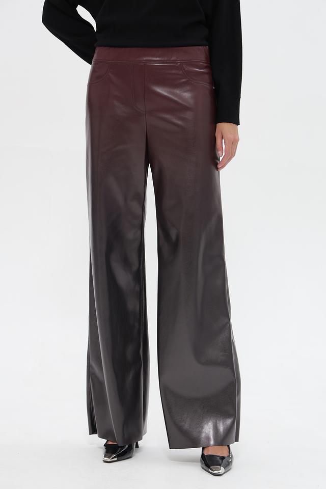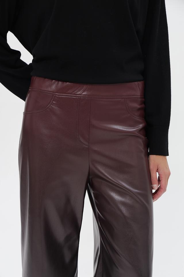Брюки от Marc Cain бордового цвета, выполнены из искусственной кожи с эластичным поясом. Модель отличается широким кроем и лаконичным дизайном, идеально подходит для создания стильных образов. Состав: полиэстер с полиуретан.покрытием 100%