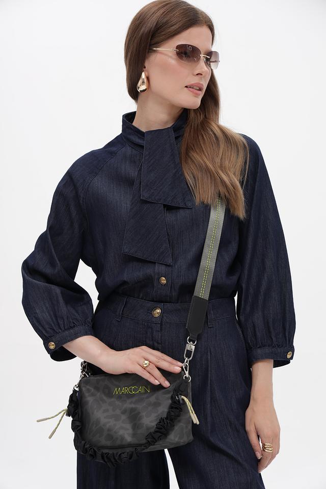 Особый шарм сумке придают детали: скрученная отделка по краям, металлизированная фурнитура и логотип Marc Cain. Эта сумка станет незаменимым аксессуаром в повседневной жизни и подчеркнет вашу индивидуальность.