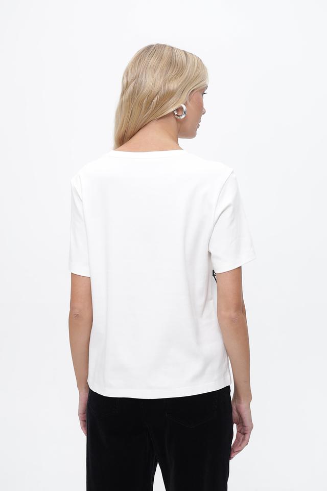 Эта футболка от Marc Cain станет ярким акцентом в вашем гардеробе. Преобладающий белый цвет создает универсальную базу для сочетания с различными элементами одежды.