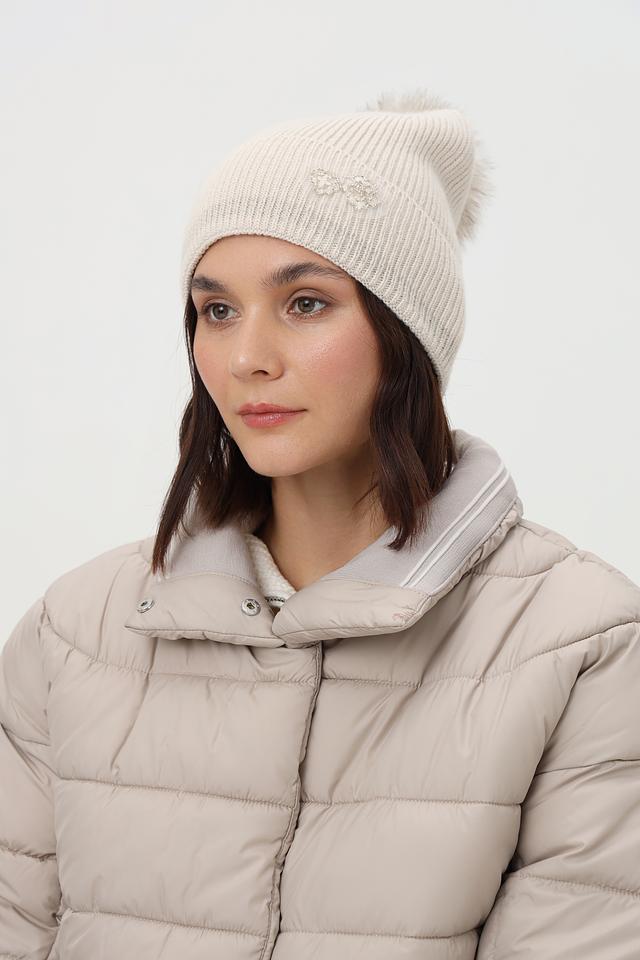 Шапка Marc Cain с помпоном бежевая