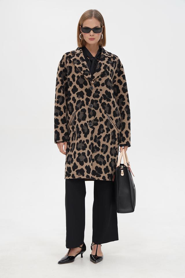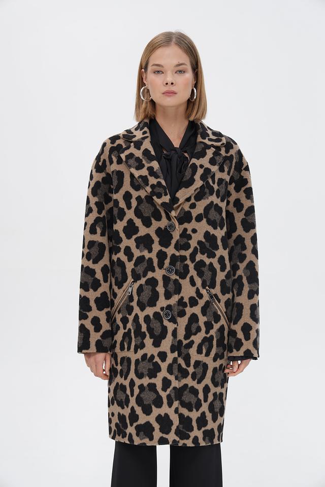 Стильное пальто Marc Cain в леопардовый принт. Изготовлено из смеси шерсти и полиамида для комфорта и тепла. Классический крой и актуальный принт делают его отличным дополнением к вашему гардеробу. Состав: шерсть 80%, полиамид 20%