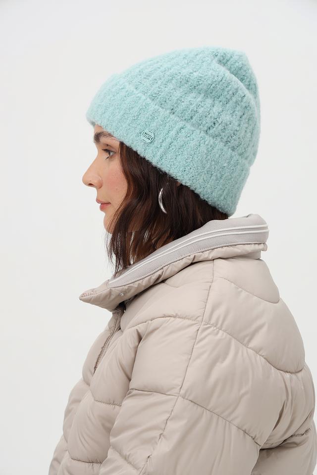 Теплая шапка от Marc Cain Sports, выполненная в нежном мятном оттенке. Модель имеет классическую форму и плотно прилегает к голове, обеспечивая комфорт в холодную погоду.