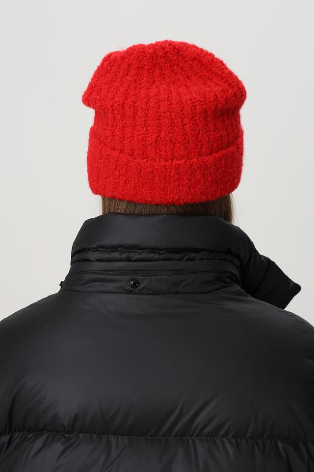 Красная вязаная шапка Marc Cain Sports – стильный и теплый аксессуар для зимы. Модель выполнена из мягкой смеси натуральных и синтетических волокон: шерсти, альпаки, акрила и полиамида. Состав: акрил 38%, альпака 34%, полиамид 15%, шерсть 13%