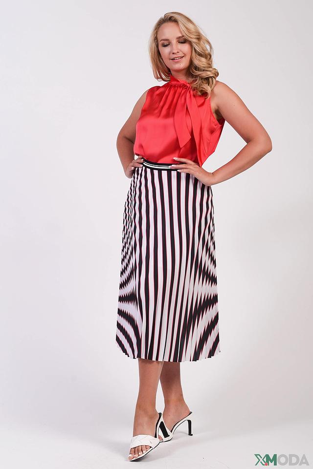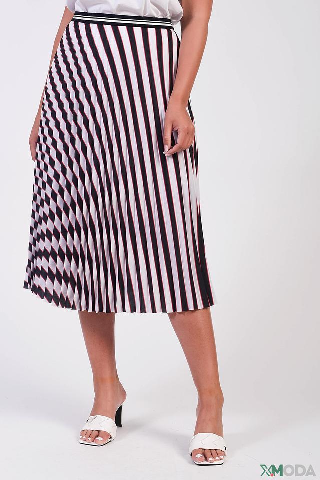 Юбка Marc Cain чёрно-белого цвета с плиссированной текстурой и полосатым принтом. Модель выполнена из полиэстера и имеет удобную посадку по фигуре. Состав: полиэстер 100%, Состав_подкладка полиэстер 100%