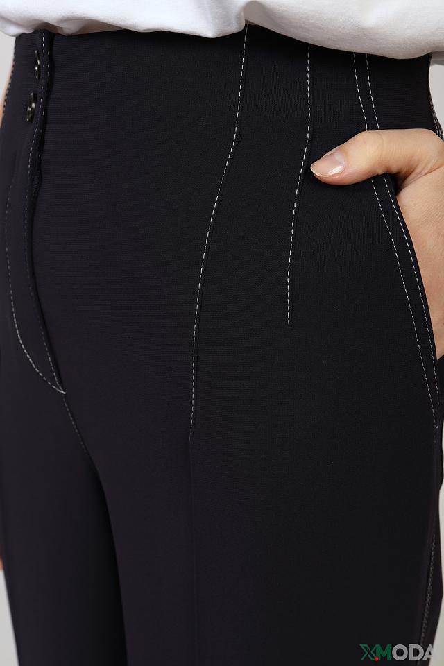 Брюки имеют прямой крой и укороченную длину, что делает их идеальным выбором для создания модных и стильных образов. Отличительной особенностью модели является декоративная отделка в виде контрастной светлой строчки, которая подчеркивает линии кроя и добавляет изысканности.