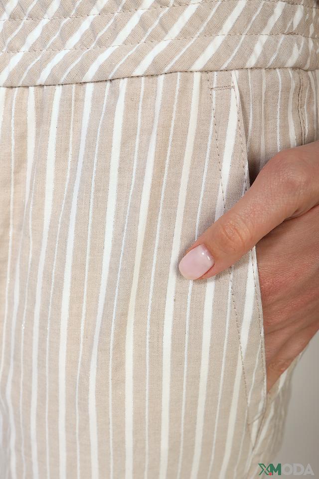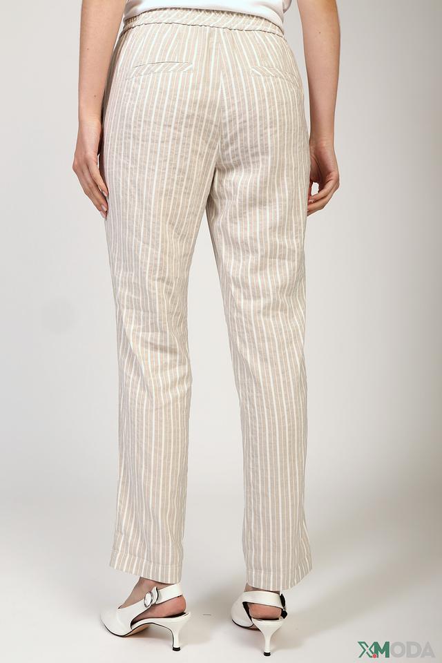 Женские брюки от Marc Cain в бежево-белую полоску – стильное и комфортное решение для создания повседневных образов. Модель выполнена из лёгкой ткани с добавлением льна, что обеспечивает приятные ощущения и воздухопроницаемость. Состав: вискоза 74%, лен 24%, полиэстер 1%, полиамид 1%