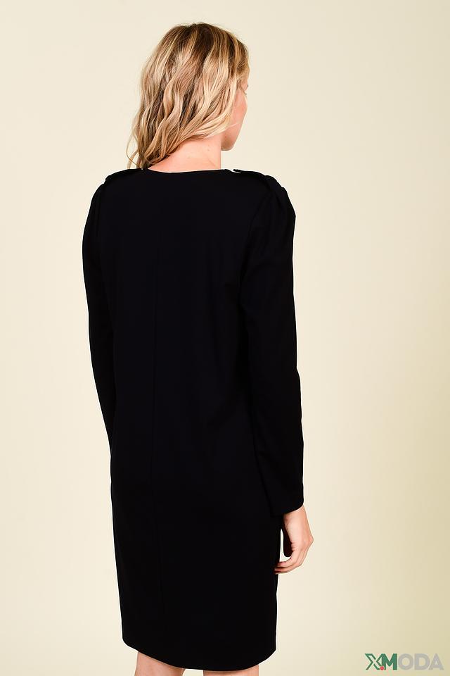 Это стильное платье от Marc Cain выполнено в классическом чёрном цвете и станет отличным дополнением к вашему гардеробу. Модель имеет прямой силуэт, длину до колена и длинные рукава.
