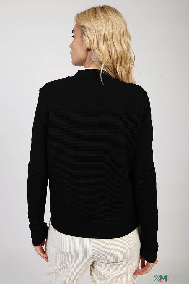 Чёрный жакет Marc Cain Sports – это стильная и удобная модель на молнии. Жакет выполнен из фактурного трикотажа с декоративной полосой "SPORTS" на манжете, что придает ему спортивный шик. Состав: вискоза 70%, полиэстер 30%