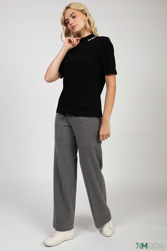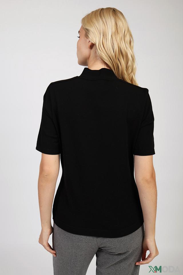 Чёрный пуловер Marc Cain Sports с коротким рукавом и воротником-стойкой. Изготовлен из мягкой вискозы с добавлением полиэстера для комфорта и износостойкости. Стильный и лаконичный дизайн. Состав: вискоза 70%, полиэстер 30%