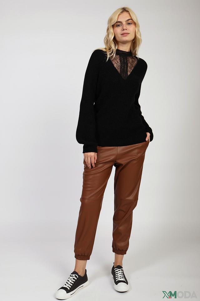 Пуловер имеет классический чёрный цвет и свободный крой, который позволяет создать непринужденный и элегантный образ. V-образный вырез декорирован изысканным кружевом, добавляющим женственности и утонченности.