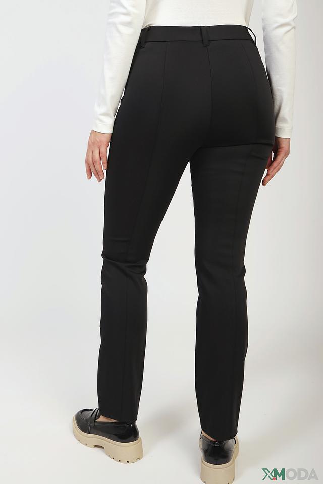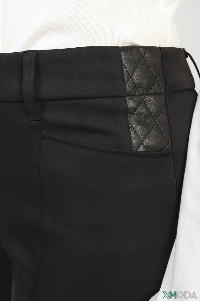 Брюки имеют прямой крой, который идеально подходит для создания как деловых, так и повседневных образов. Застёжка на молнию и пуговица обеспечивают надежную фиксацию. Особый акцент в дизайне – декоративные вставки из экокожи на задних карманах, которые придают брюкам изысканный вид.