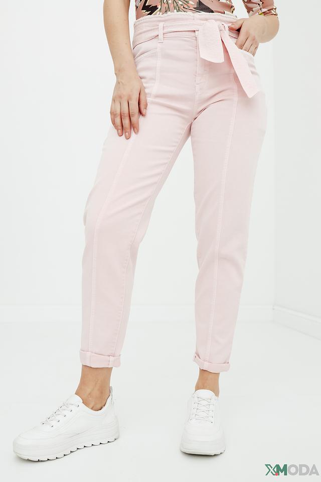 Женские джинсы Marc Cain нежно-розового цвета с завышенной талией и поясом-завязкой. Модель выполнена в актуальном стиле с укороченным силуэтом и подворотами. Состав: хлопок 92%, эластомультиэстер 6%, эластан 2%