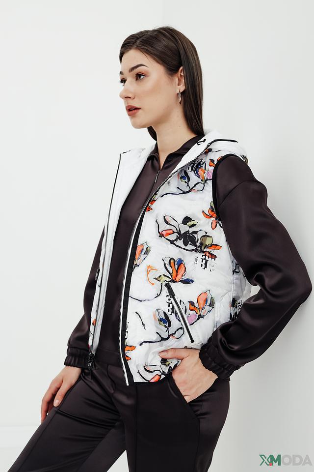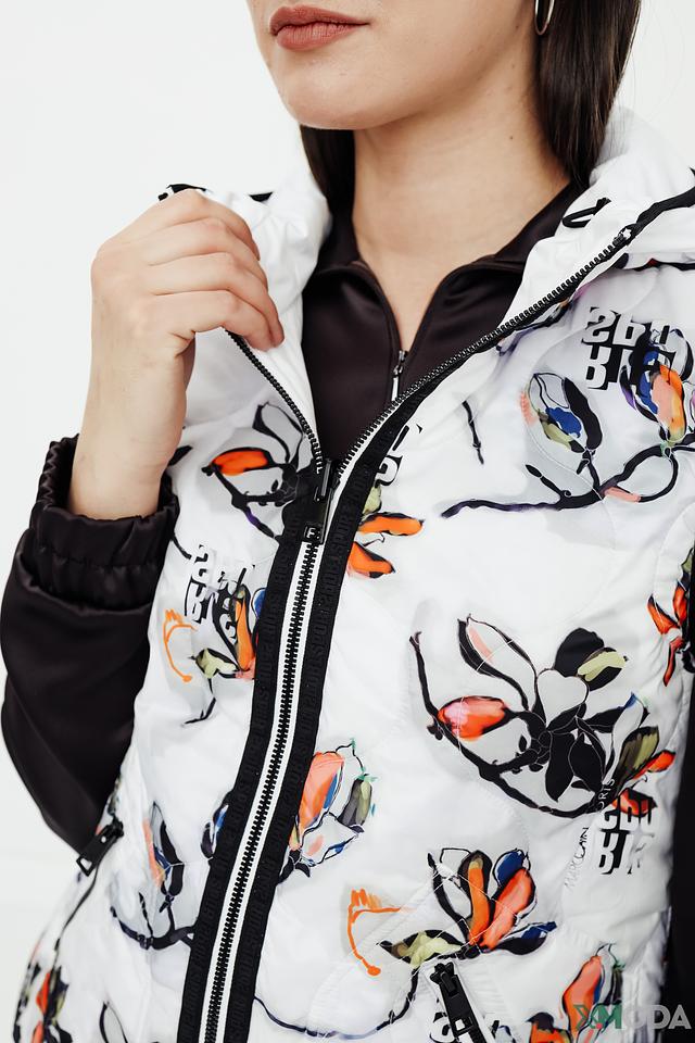 Этот жилет от Marc Cain Sports – прекрасный выбор для тех, кто ценит комфорт и стиль. Жилет выполнен в сочетании чёрного и белого цветов, что делает его универсальным и легко сочетаемым с различными элементами гардероба.