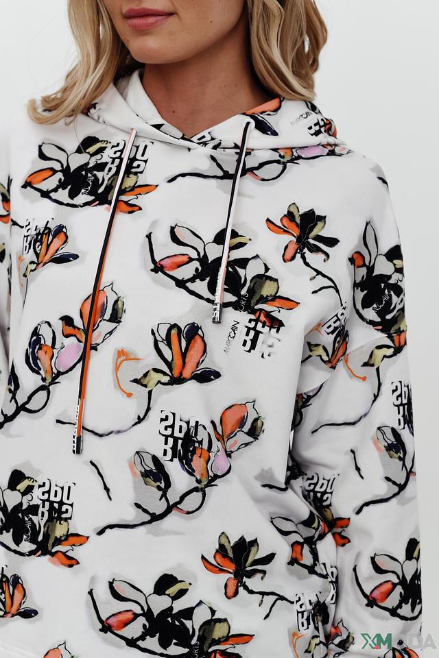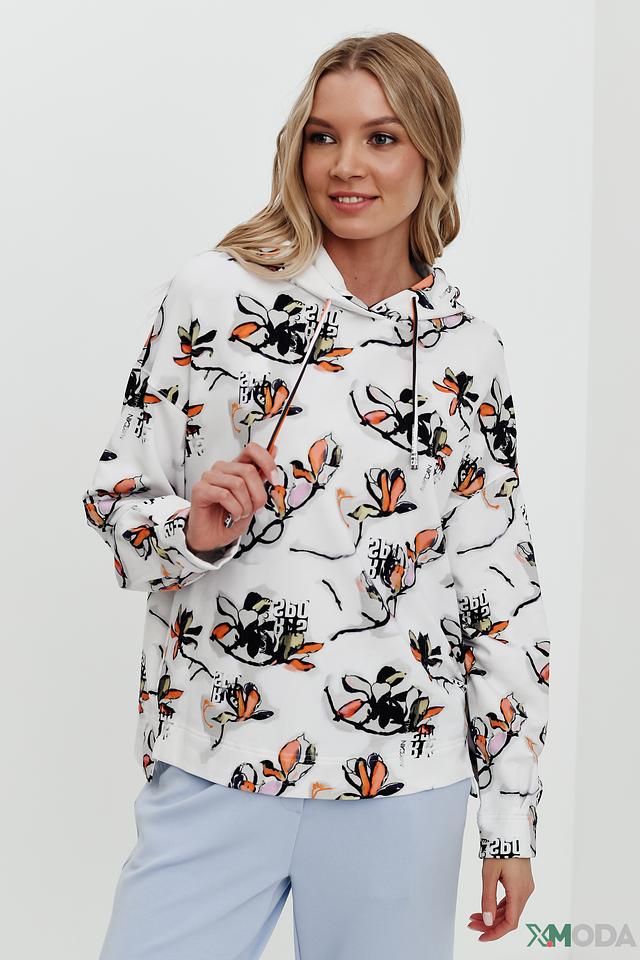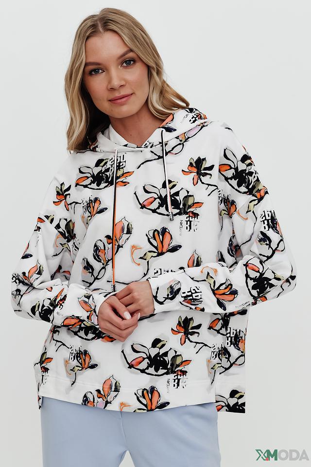 Эта стильная толстовка от Marc Cain идеально подходит для создания непринужденных образов. Она выполнена в белом цвете и украшена ярким цветочным принтом, который добавляет ей женственности и оригинальности.