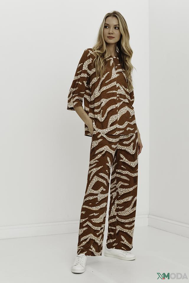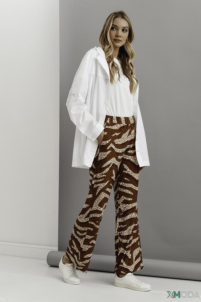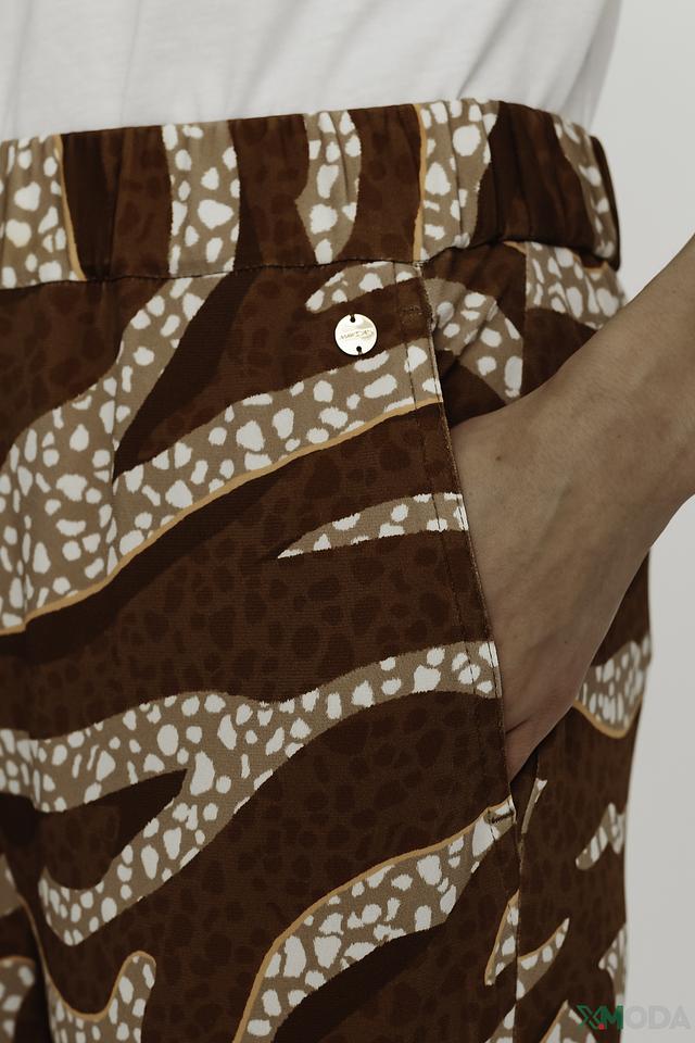 Эти стильные брюки от Marc Cain идеально подойдут для создания модных и комфортных образов. Брюки выполнены в коричневой цветовой гамме и украшены эффектным принтом, имитирующим окрас зебры.