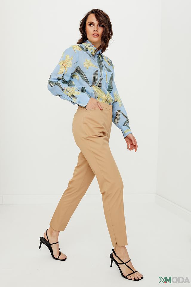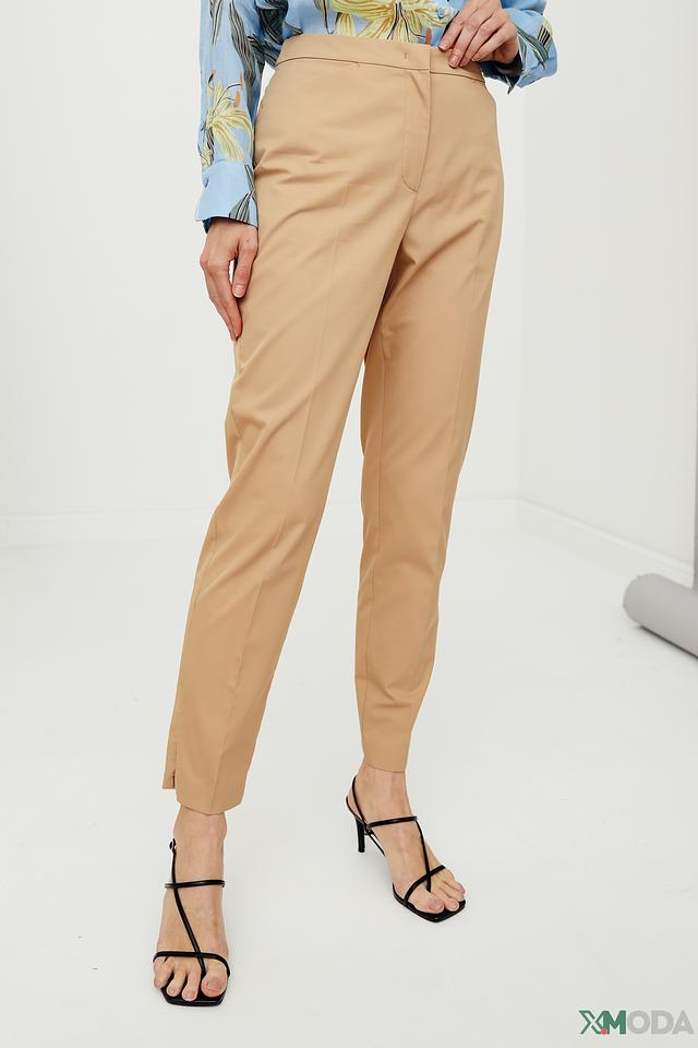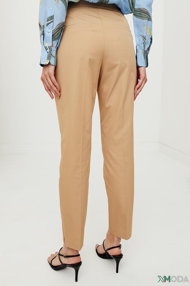 Брюки имеют прямой крой, который подчеркивает фигуру, не сковывая движений. Застежка на молнию и пуговицу обеспечивает надежную фиксацию. Небольшой разрез по низу брюк добавляет им современный акцент.