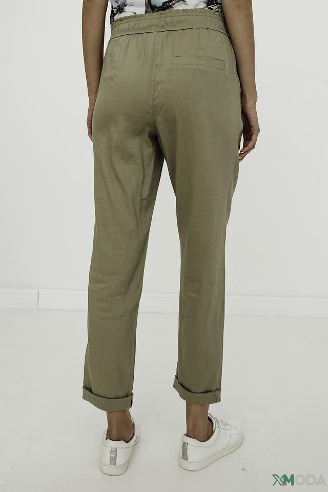 Брюки Marc Cain цвета хаки — это стильное и комфортное решение для повседневного гардероба. Модель выполнена из лёгкой ткани с добавлением вискозы и эластана, имеет удобный пояс на кулиске и зауженные книзу брючины. Состав: лен 59%, вискоза 39%, эластан 2%