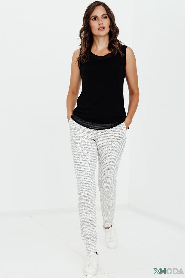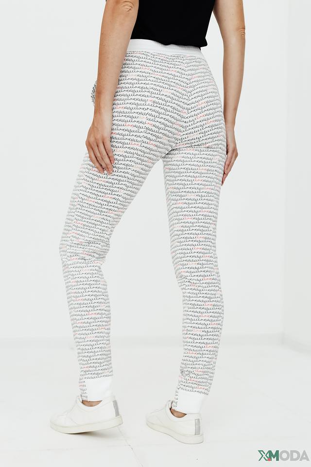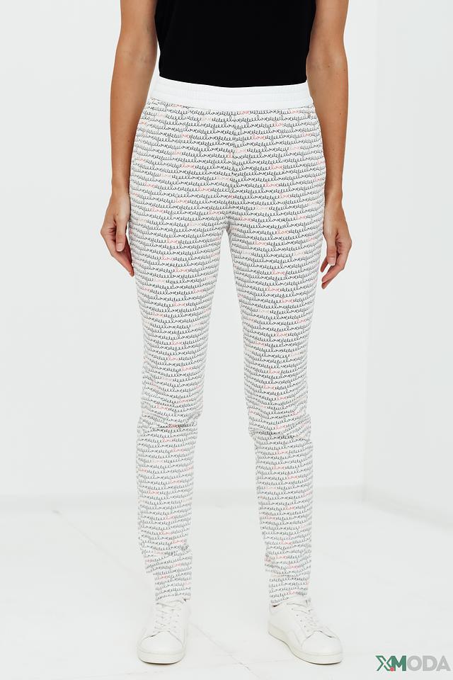 Брюки от Marc Cain белого цвета с оригинальным принтом в виде текста. Модель выполнена из полиамида с добавлением эластана, обеспечивающего комфорт и свободу движений. Идеальный выбор для создания стильного и современного образа. Состав: полиамид 86%, эластан 14%