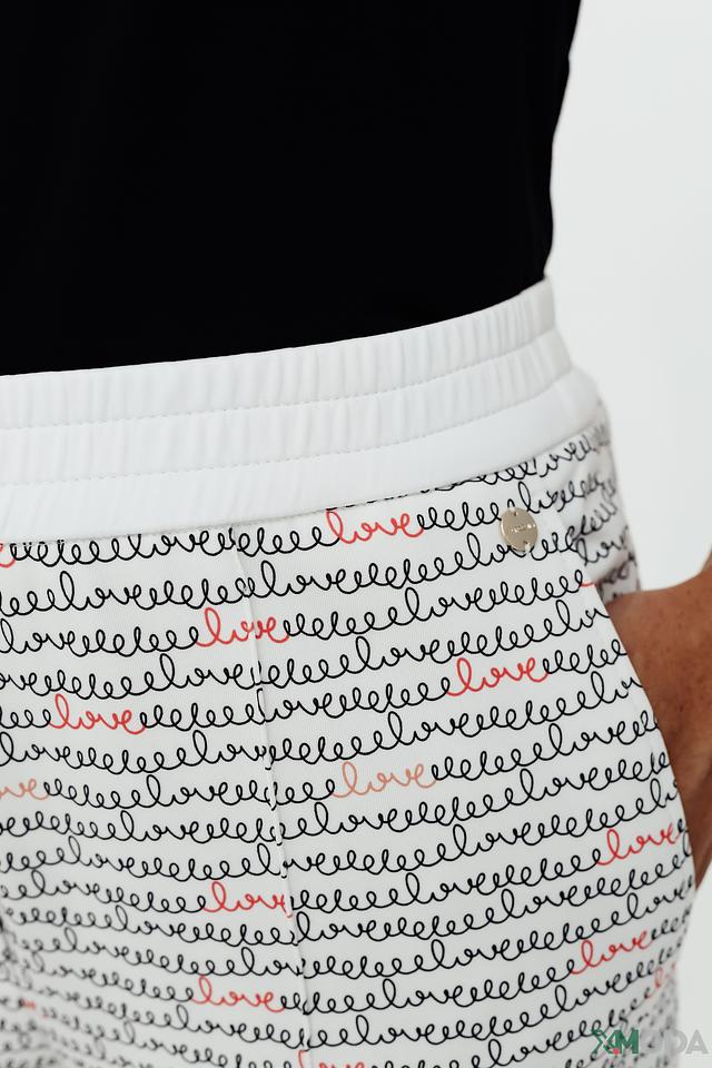 Эти брюки от Marc Cain станут ярким акцентом вашего гардероба. Выполнены в белом цвете и украшены необычным принтом, имитирующим текст. Благодаря сочетанию полиамида и эластана, брюки обладают высокой износостойкостью и приятны к телу.