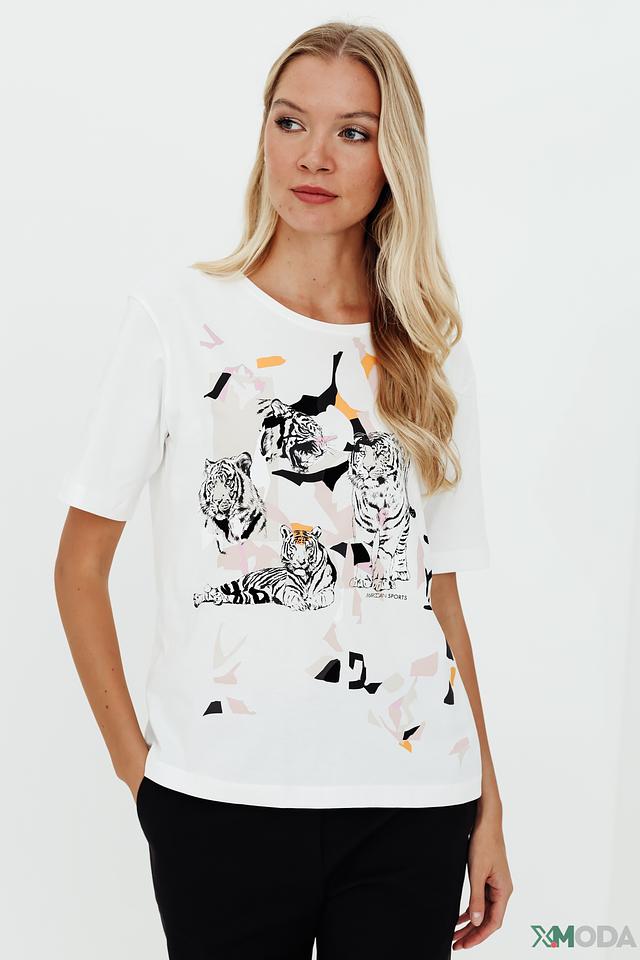 Белая футболка Marc Cain Sports с ярким принтом тигров станет стильным дополнением к вашему гардеробу. Модель из 100% хлопка обеспечивает комфорт и удобство в носке, а свободный крой позволяет создать расслабленный образ. Состав: хлопок 100%