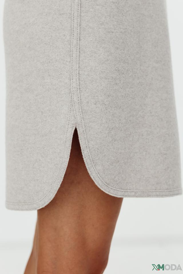Юбка имеет классический крой и длину до колена. Сдержанный серый цвет делает ее универсальной и легко сочетаемой с различными элементами одежды. Небольшой разрез сзади придает образу динамичность и легкость.