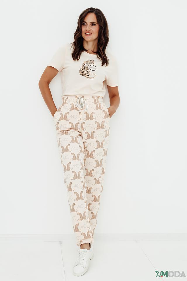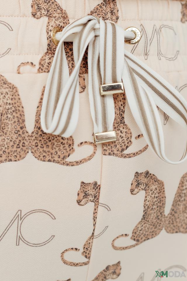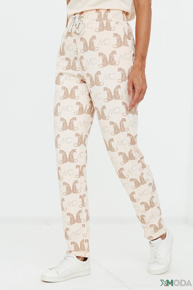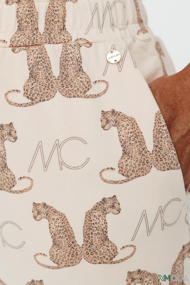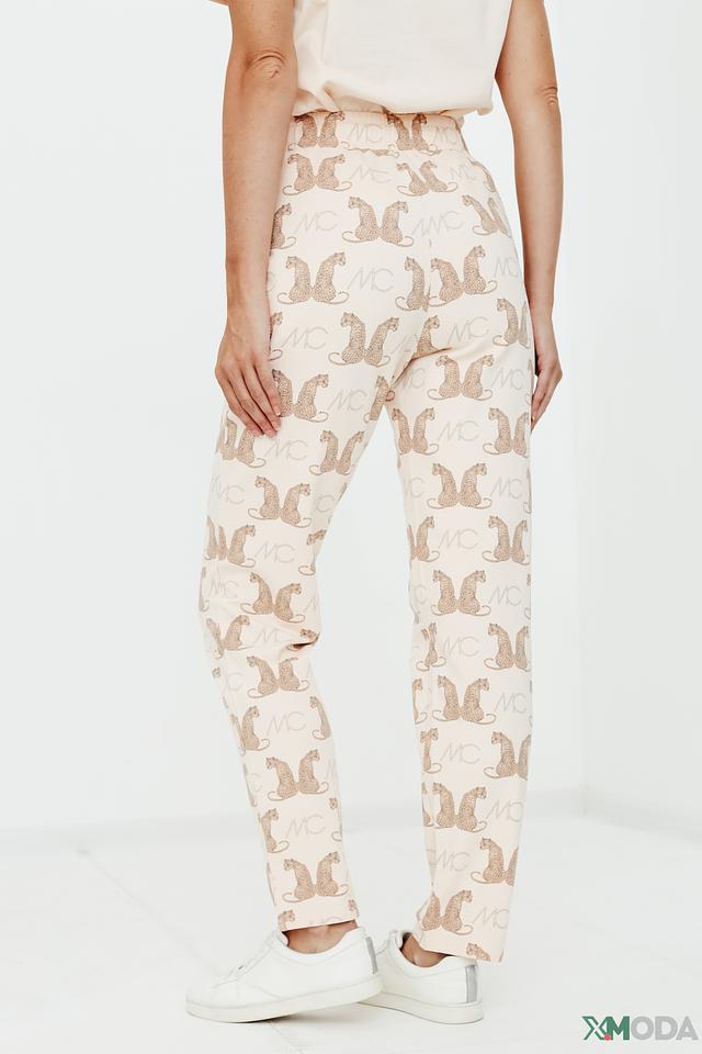 Брюки от Marc Cain кремового цвета с оригинальным леопардовым принтом станут стильным дополнением к вашему гардеробу. Модель выполнена из мягкого хлопка с добавлением эластана для комфортной посадки. Состав: хлопок 98%, эластан 2%