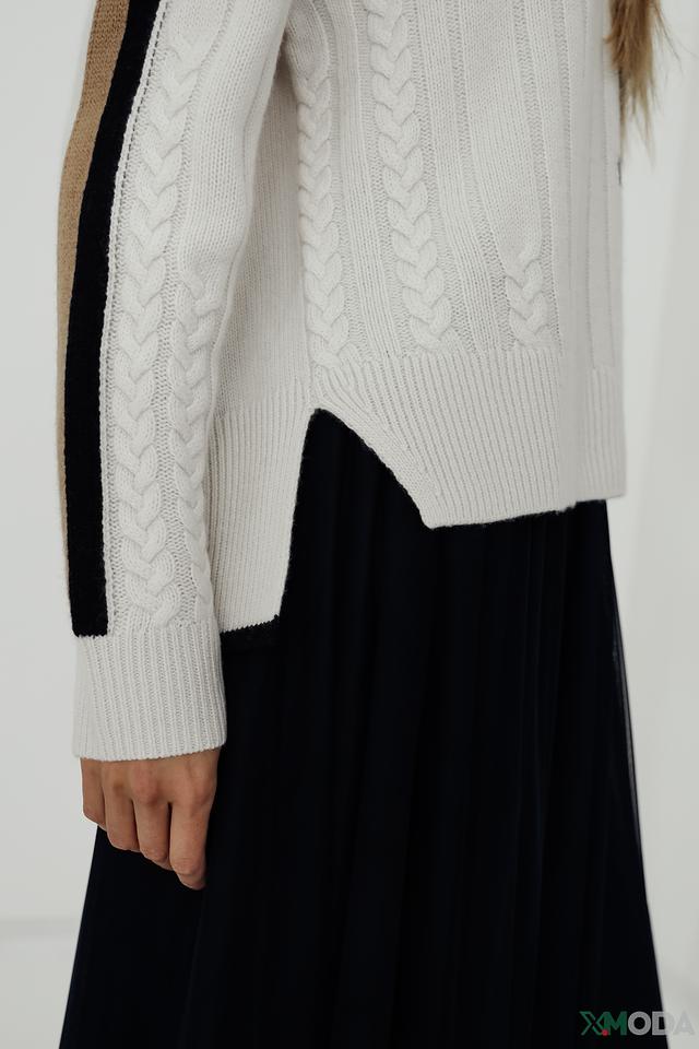 Пуловер изготовлен из высококачественной смеси шерсти (90%) и кашемира (10%), что обеспечивает мягкость, тепло и комфорт при носке. Этот пуловер идеально подойдет для создания как повседневных, так и более изысканных образов.