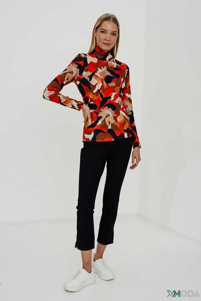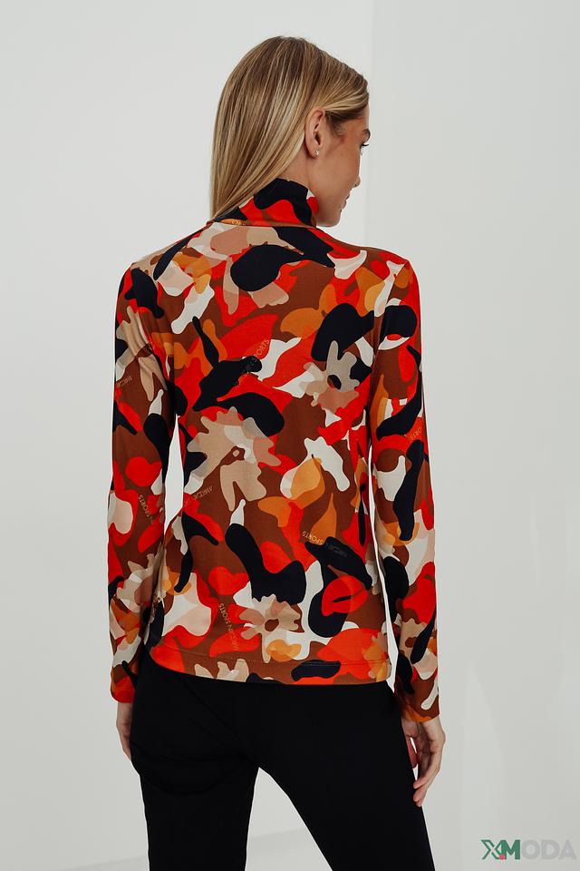 Водолазка имеет длинные рукава и облегающий силуэт. Главная особенность – эффектный принт в оранжево-коричневой гамме, который придает изделию оригинальность и динамичность.