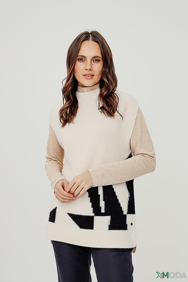 Этот стильный жилет от Marc Cain выполнен в бежевом цвете и украшен выразительным чёрно-белым графичным рисунком. Он станет отличным выбором для создания многослойных образов и добавит изюминку в ваш повседневный стиль.