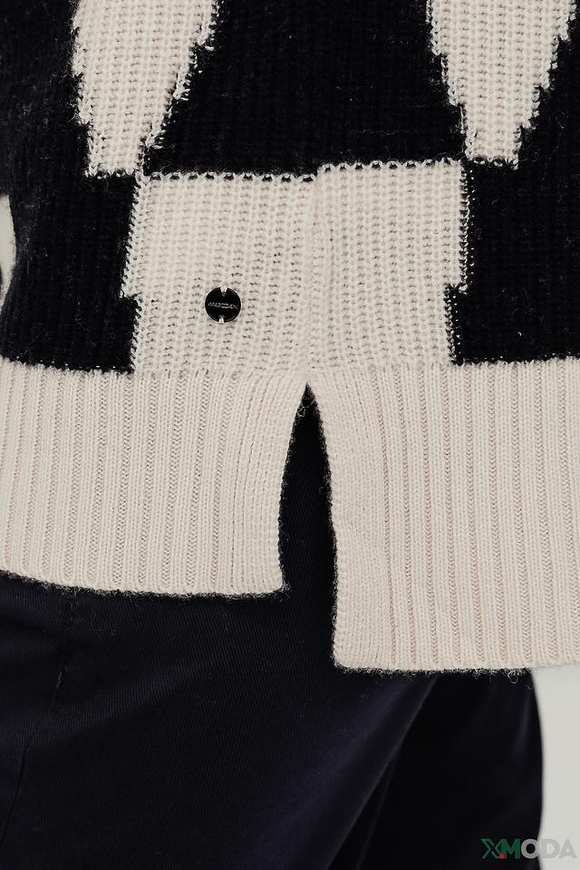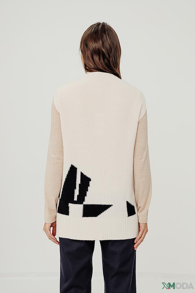 Бежевый жилет Marc Cain с оригинальным чёрно-белым графичным рисунком станет стильным дополнением к вашему гардеробу. Модель выполнена из мягкой смеси шерсти и кашемира, обеспечивающей комфорт и тепло. Состав: шерсть 90%, кашемир 10%